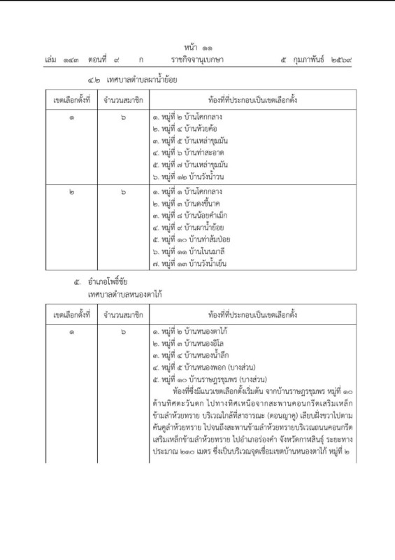 ประกาศราชกิจจานุเบกษา เล่มที่ 143 ตอนที่ 9 ก ลงวันที่ 5 กุมภาพันธ์ 2569